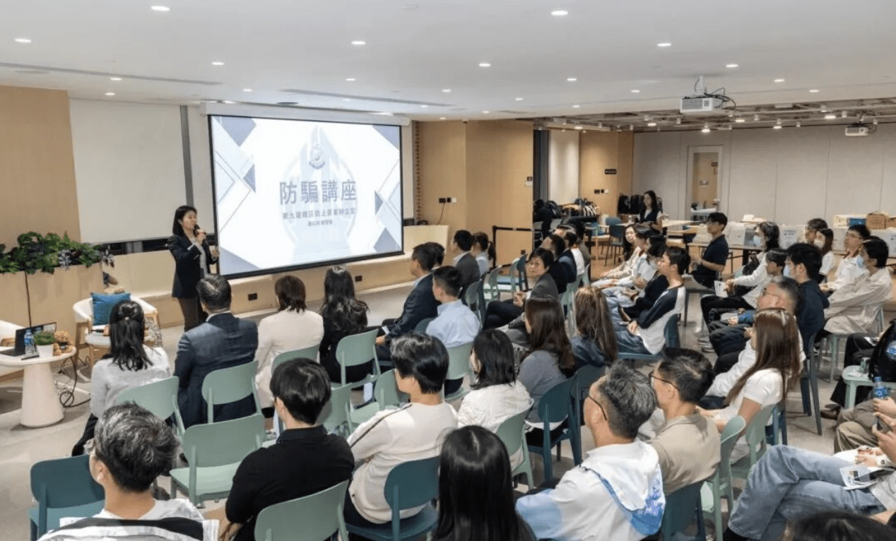 本次香港警務處東九龍總區防止罪案辦公室聯合中國銀行(香港)、香港金融管理局、個人資料私隱專員公署,以「數據案例+沈浸互動」形式,揭開詐騙話術的層層偽裝,更為學生與職場新人指點金融行業與人才培養的發展密碼。