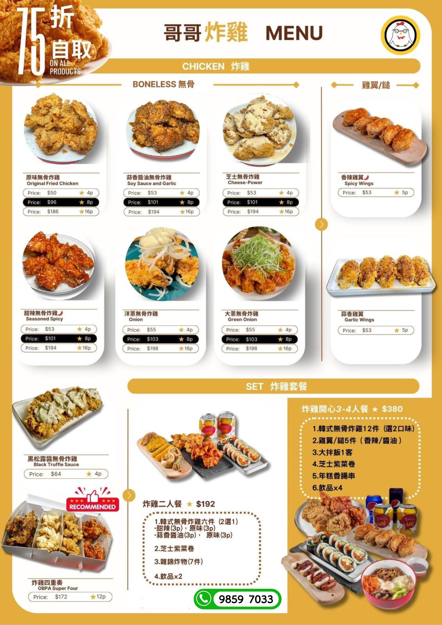 1️⃣ Whatsapp 9859 7033 下單