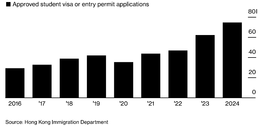 Visa and immigration restrictions in the US may also boost demand for Hong Kong’s universities. “Some places are becoming less welcoming toward newcomers,” making Hong Kong a more competitive destination, said Gordon Tse, senior director at Midland Holdings, which offers immigration and student visa consulting services. “Hong Kong happens to be trying to revive its status as an international city after Covid lockdown through different ways including developing the education industry”